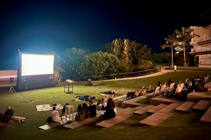 開放感あふれる星空の下、オリオンビールを片手に、ご家族やご友人とともに、ゆったりとくつろぎながら、心に残るリゾートシネマのひとときをお過ごしください。